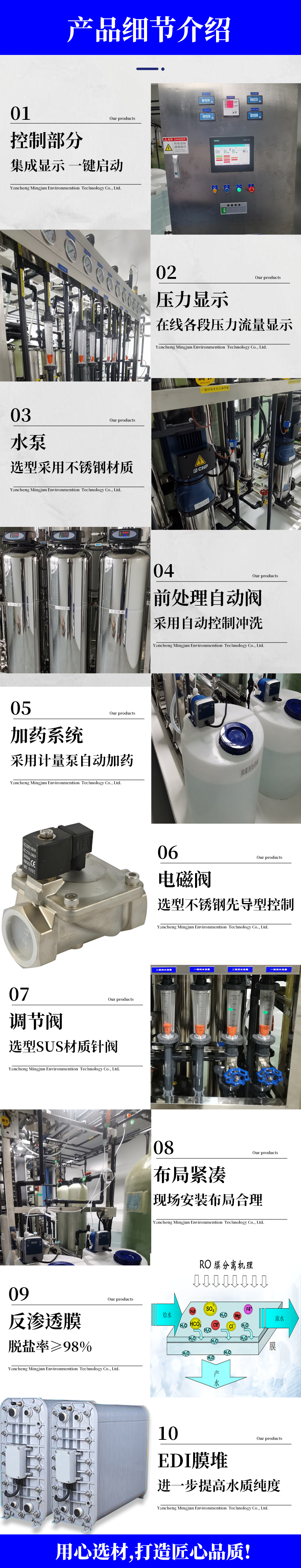 鹽城超純水、去離子水設(shè)備制造商鹽城名俊環(huán)??萍加邢薰?,工廠位于江蘇鹽城市鹽都區(qū)大縱湖,是超純水、去離子水設(shè)備的生產(chǎn)廠家。作為鹽城水處理設(shè)備制造商,我們忠于水處理設(shè)備技術(shù)的研發(fā)、生產(chǎn)及銷售安裝等服務(wù),超純水、去離子水設(shè)備設(shè)備廣泛運用于醫(yī)藥、玻璃清洗、化工、涂裝、汽車、電子、鍋爐補水等行