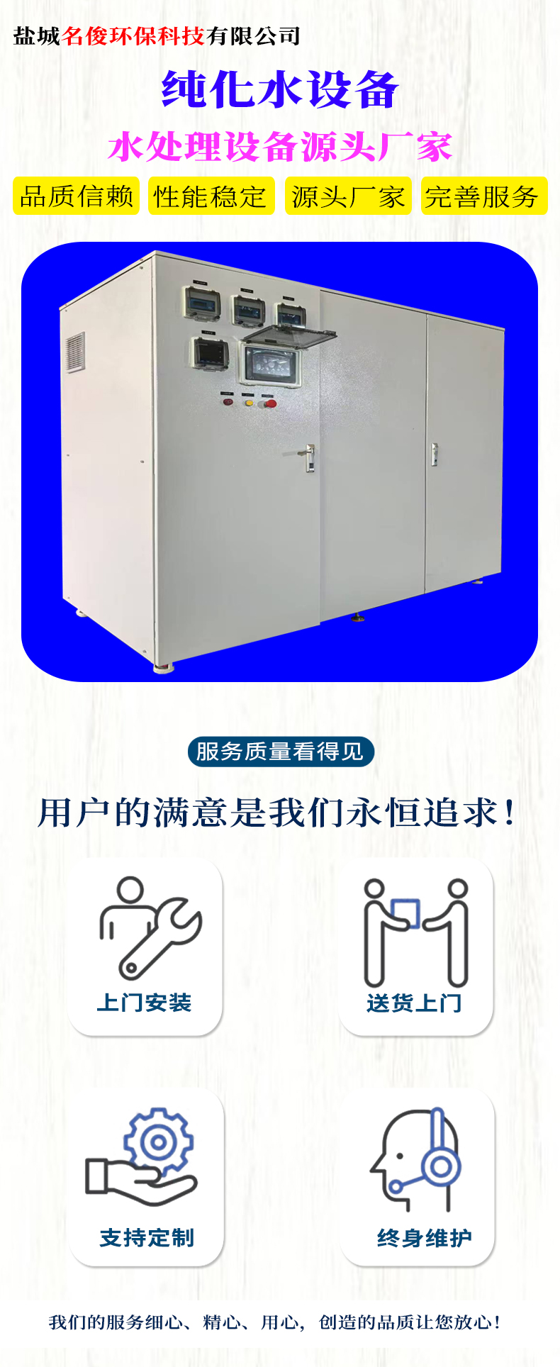 鹽城名俊環(huán)??萍加邢薰局鳡I:反滲透純水設(shè)備,純化水設(shè)備,軟化水處理設(shè)備,工業(yè)去離子水,水處理設(shè)備維修保養(yǎng)及水處理設(shè)備的配件及耗材等。